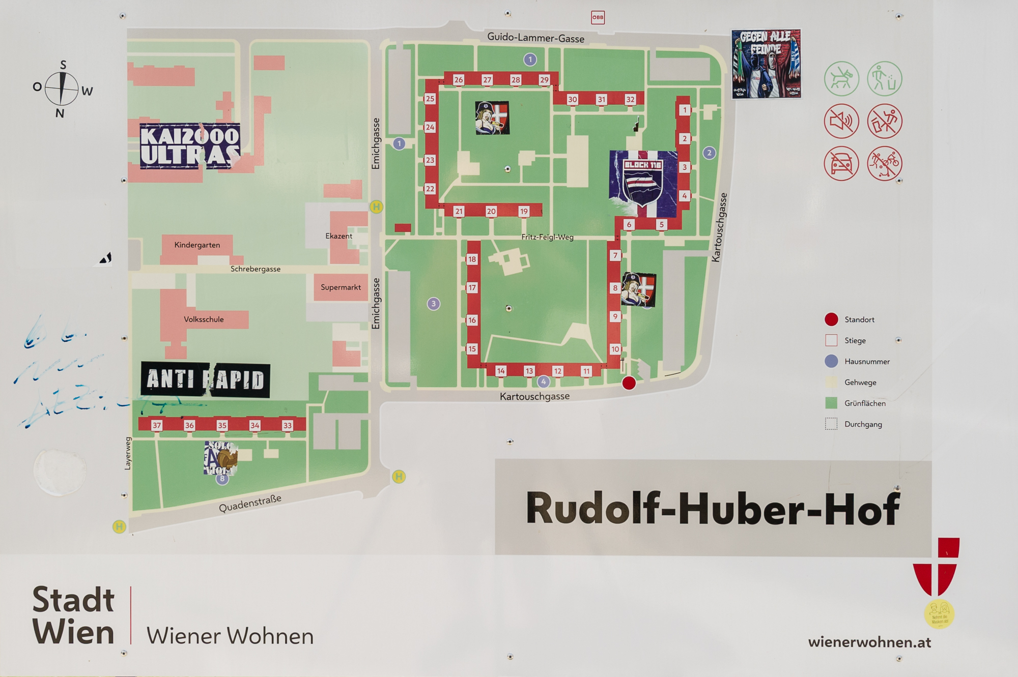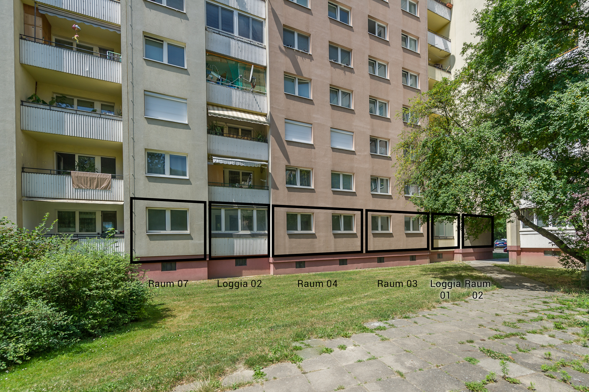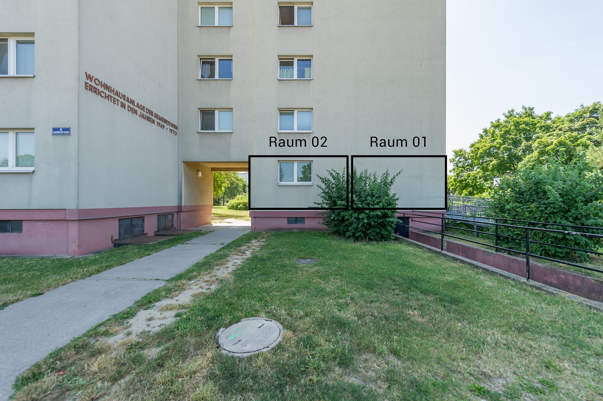 | Beschreibung Objekt | Zur Vermietung gelangt ein hofseitiges Objekt im Erdgeschoß des 1970 erbauten Rudolf-Huber- Hofs. Eine Heizung (Fernwärme) ist verfügbar. Das Mietobjekt ist über acht Stufen erreichbar. Vorhandene Räume: 10 Räume, 3 Vorräume, 3 WC, 2 Loggia |